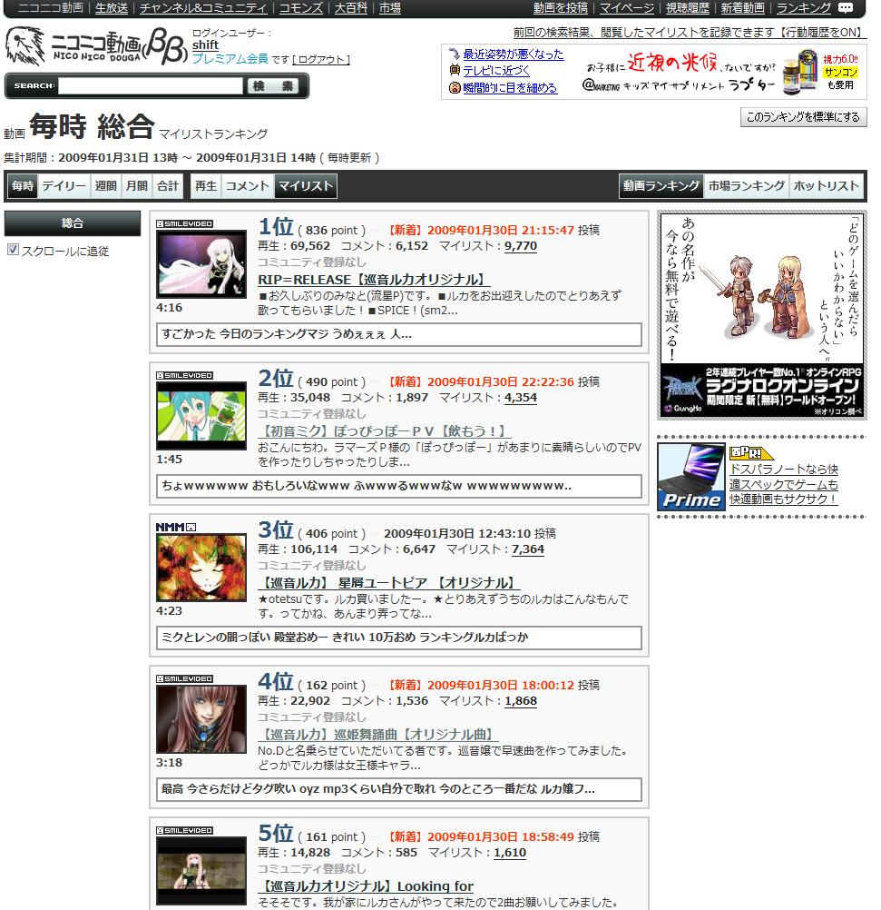 ニコニコのランキングを見てみたら・・・・ これは・・・・